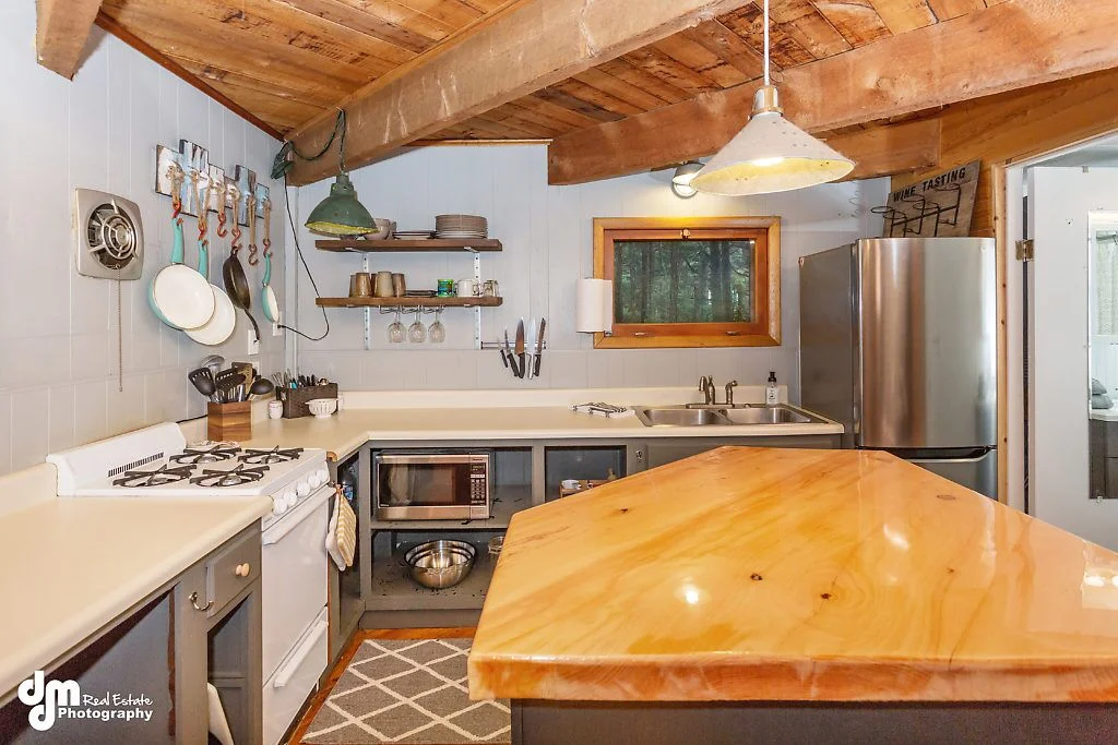 And the kitchen is a perfect blend of both worlds – woodsy but still modern.