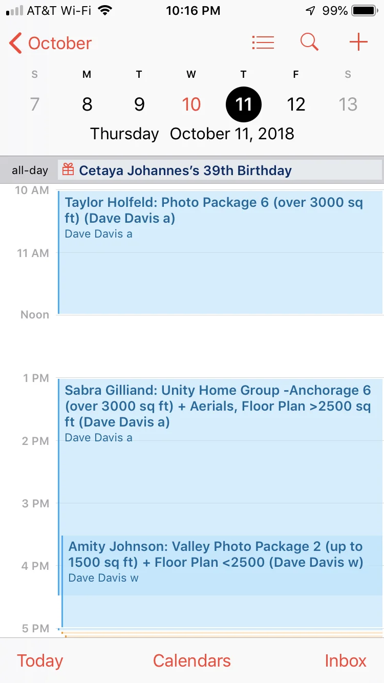 It is also highly recommended that you contact our admin team to let them know when you need to take time off your normal schedule. Please email them at admin@dmdrealestatephotography.com with those details. If you need to block off multiple days, the best thing to do is to just email our admin team and they can block on the booking system.
